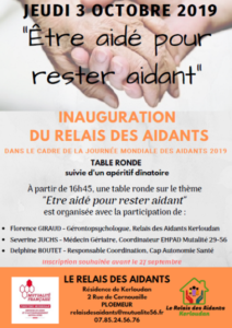 Dans le cadre de la journée mondiale des aidants le 6 octobre dernier et de l’inauguration du « relais des aidants » de Plœmeur, une table ronde enrichissante sur la thématique des aidants (dont la santé est devenue un enjeu de santé publique) a été organisée en présence de différents intervenants le 3 octobre.